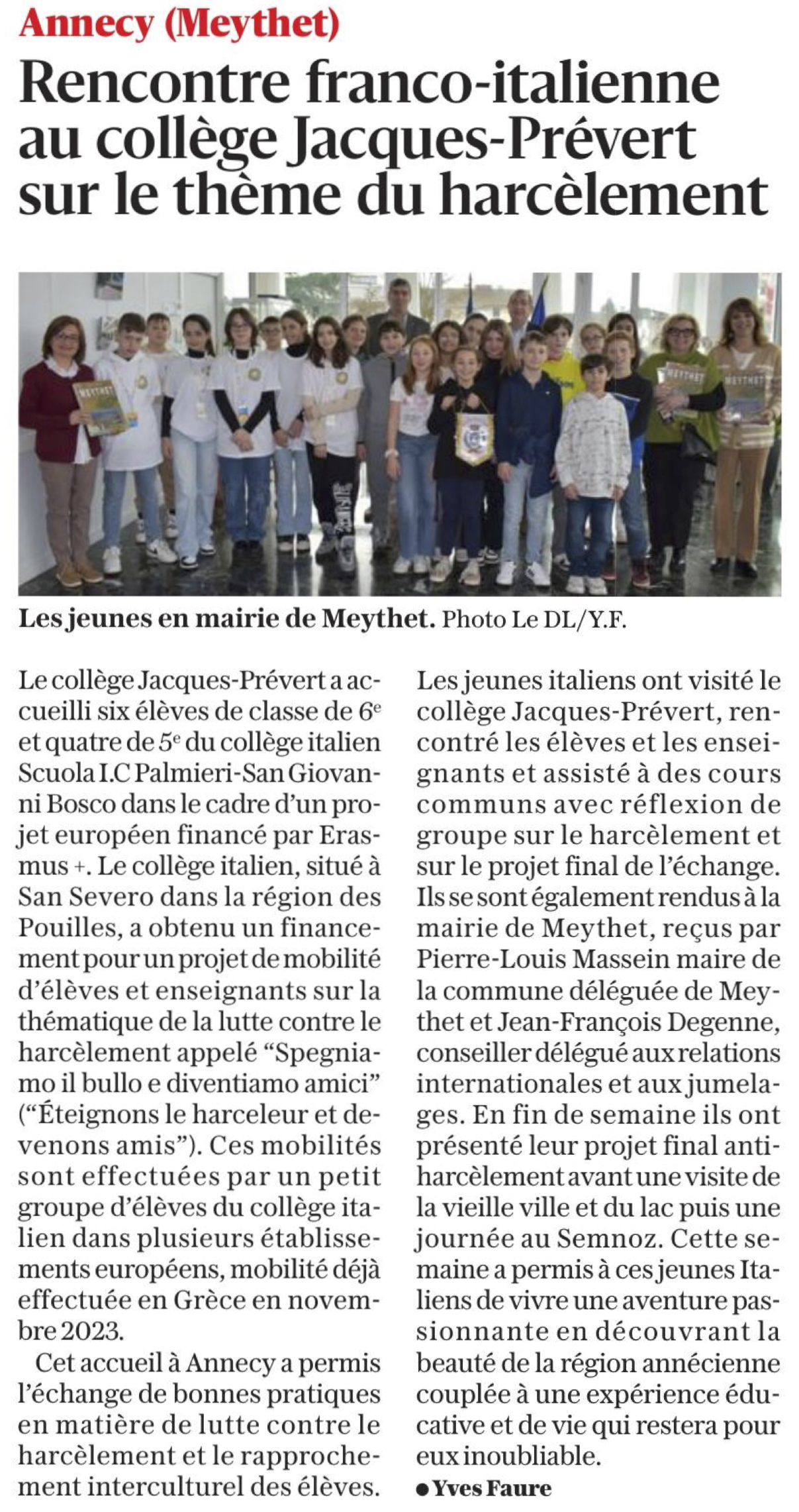 10 élèves du collège de San Severo San Giovanni Palmieri sont venus avec une bourse Erasmus+ dans notre collège
