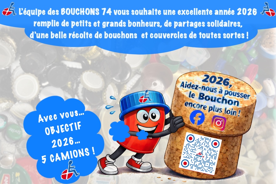 L'équipe des BOUCHONS 74 vous souhaite une excellente année 2026 remplie de petits et grands bonheurs, de partages solidaires,